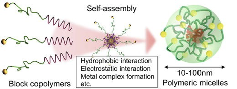 A polymeric micelle is an equilibrium self-assembly of amphiphilic block copolymers into core–shell nanoparticles